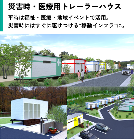 り、自治体向けの災害用・医療用トレーラーハウスの導入実績の多数。日