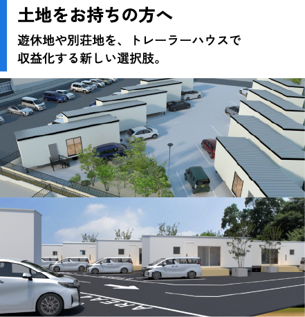 遊休地・別荘地・駐車場など、使われていない土地を事業に転換。小規模スタートから成功に応じて台数を増やすことも可能。