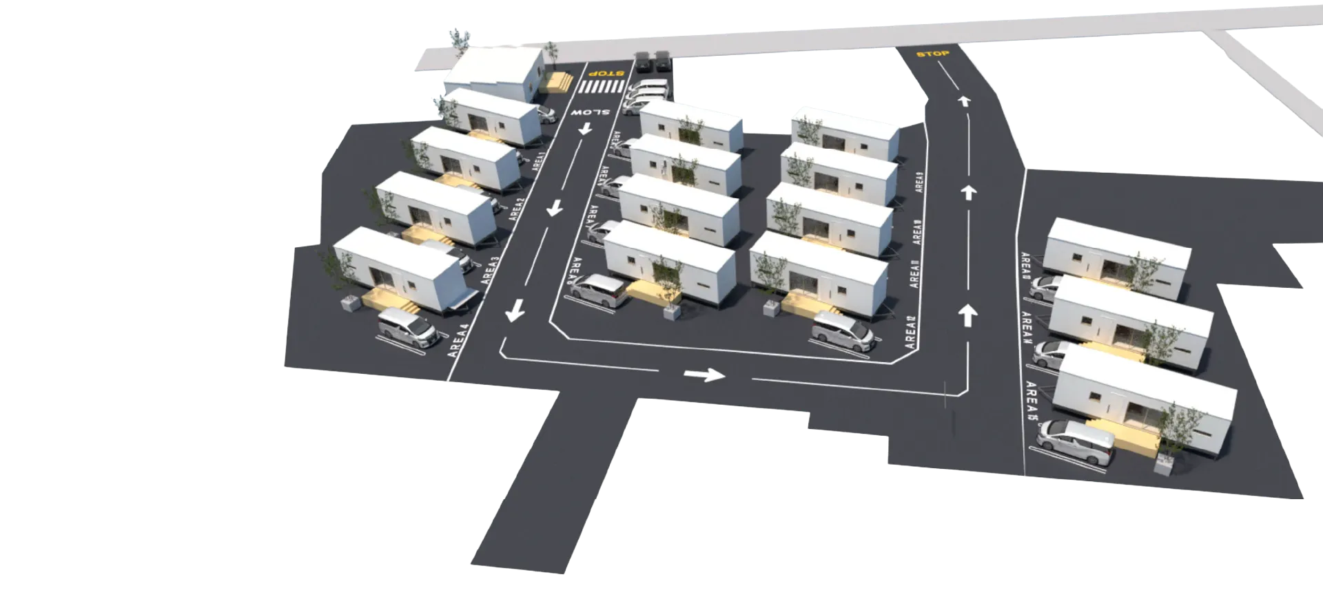 敷地の広さや形状にあわせて、トレーラーハウスの台数・配置・