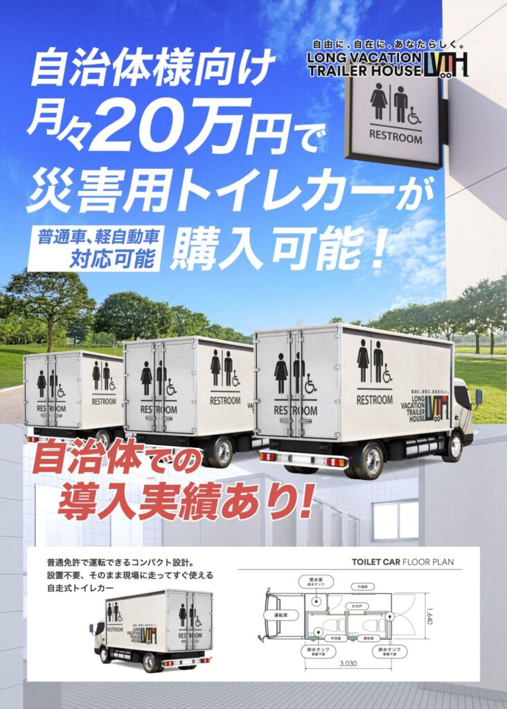 災害時の衛生確保から地域イベントまで、現場へ“そのまま走って使える”自走式トイレカーのご案内です。